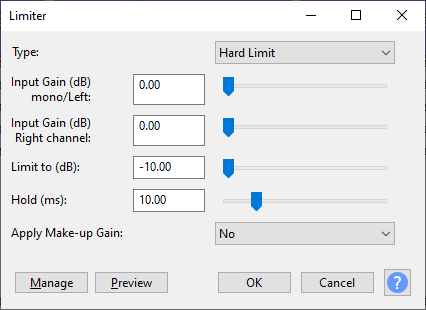 III – Vá no menu Effects -> Limiter e configure assim