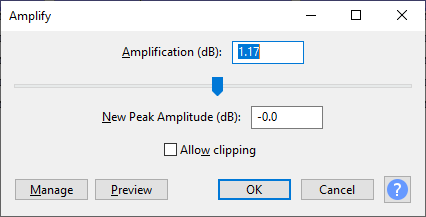 IV – Vá no menu Effects -> Amplify de novo e coloque New Peak Amplitude para -2.0 dessa vez.