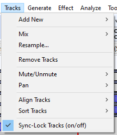 I – Verifique se Tracks -> Sync-Lock Tracks esteja marcado